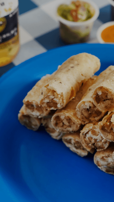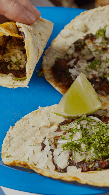 Claro que sí, tenemos tacos de berenjenas y champiñones. También hay frijoles negros y guacamole vegano.